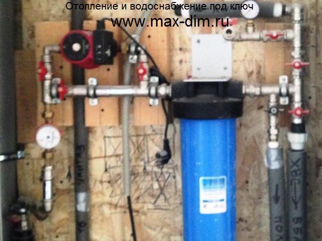 Здесь показаны наши работы по монтажу систем отопления и водоснабжения в доме 250 м.кв. построенный из газобетона. В цокольном этаже мы сделали котельную, в которой разместили все оборудование для отопления дома газовым котлом, очистное оборудование для водоснабжения.