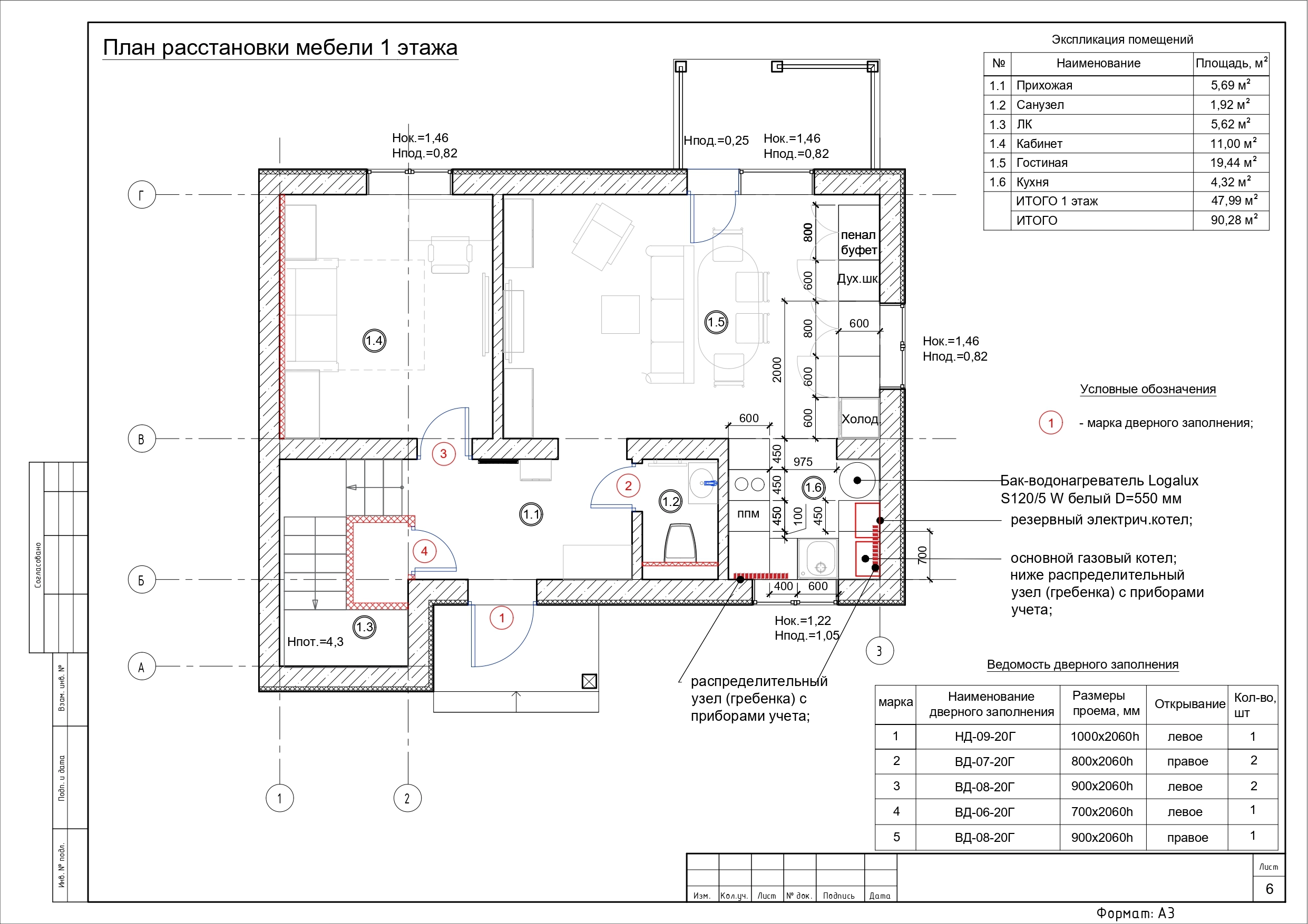 5. Пол первого этажа: монолитная плита толщиной 200 мм., утеплитель, гидроизоляция.